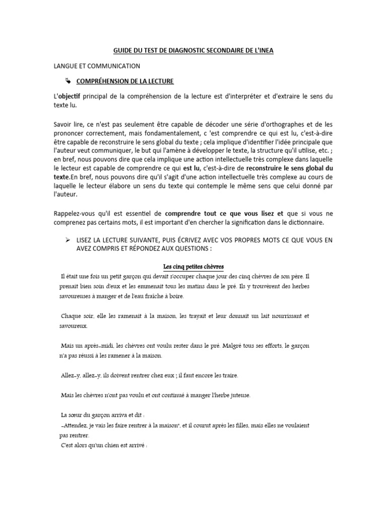 LISEZ LA LECTURE SUIVANTE, PUIS ÉCRIVEZ AVEC VOS PROPRES MOTS CE QUE VOUS EN