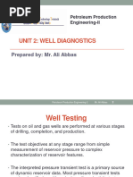 refer to well testing as reservoir testing. tries to push more oil ahead of it, getting after the flow rate change to observe what