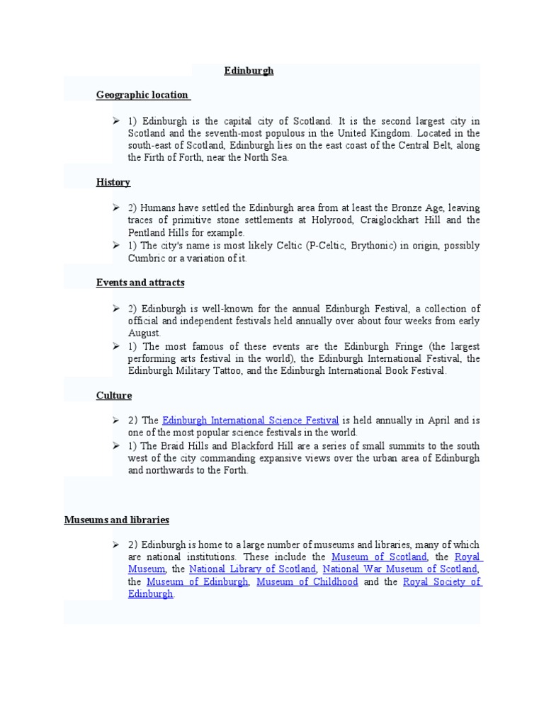 2) Edinburgh is home to a large number of museums and libraries, many of which