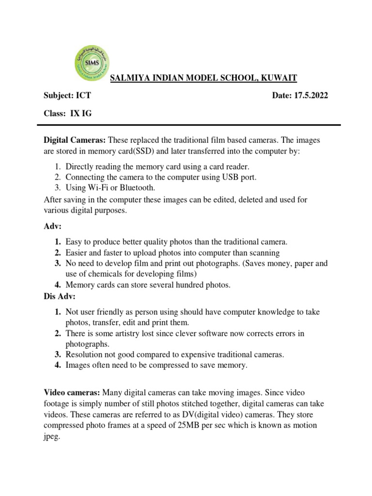Digital Cameras: These replaced the traditional film based cameras. The images