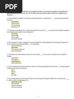 Hellenic American Union 20 Practice Exam for the TOEIC Test 125. Less developed countries receive ________from the European Union to finance variousdevelopment projects.(A) allowances(B) bonds(C) grants(D) stakes 126. The new secretary ________ someproblems which she could not handlewithout the directors assistance.(A) ran after(B) ran for(C) ran into(D) ran through 127. Shareholders in both companies finally________ an agreement and decided toproceed with the merger.(A) approached(B) arrived(C) consented(D) reached 128. Investors reacted nervously to the bad newsstemming ________ the slowdownin Americas housing market.(A) by(B) from(C) of (D) off 129. Mr. Delancas ________ effectivecommunication skills, coupled withhis ability to think on his feet, helped himget promoted quickly.(A) high(B) higher(C) highest(D) highly 130. The marketing director managed to________ the target audiences awarenesswith his new advertising campaign.(A) augment(B) influence(C) raise(D) rise 131.