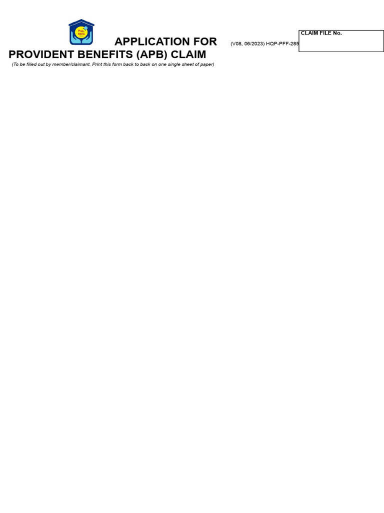 The Application for Provident Benefits Claim (APB) (HQP-PFF-285) may