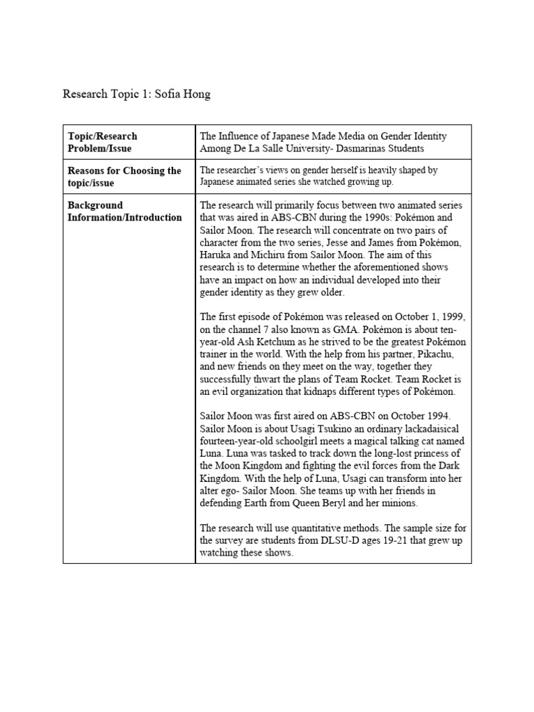 Topic/Research The Influence of Japanese Made Media on Gender Identity