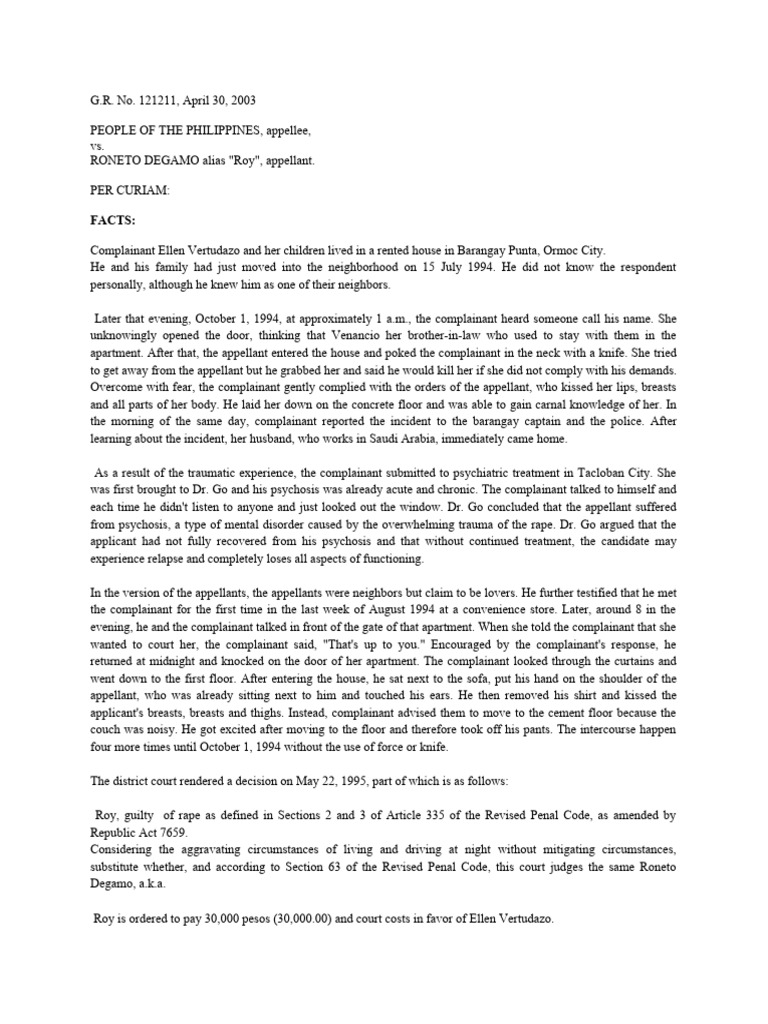 Degamo the penalty DEATH. As this was punishable by death, an automatic review by the Supreme Court.