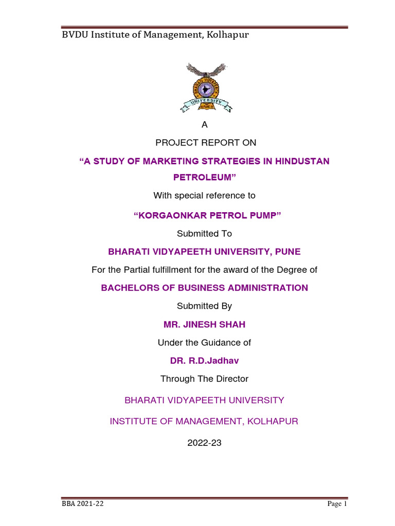 Damodar Shivram & Co. Petrol Pump in Kolhapur,”. Through the survey I