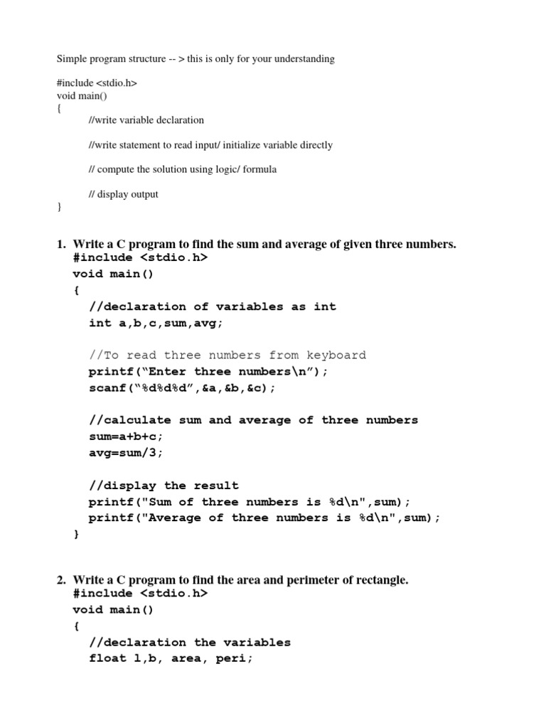 4. Write a C program to find the area and perimeter of triangle. Read the input from