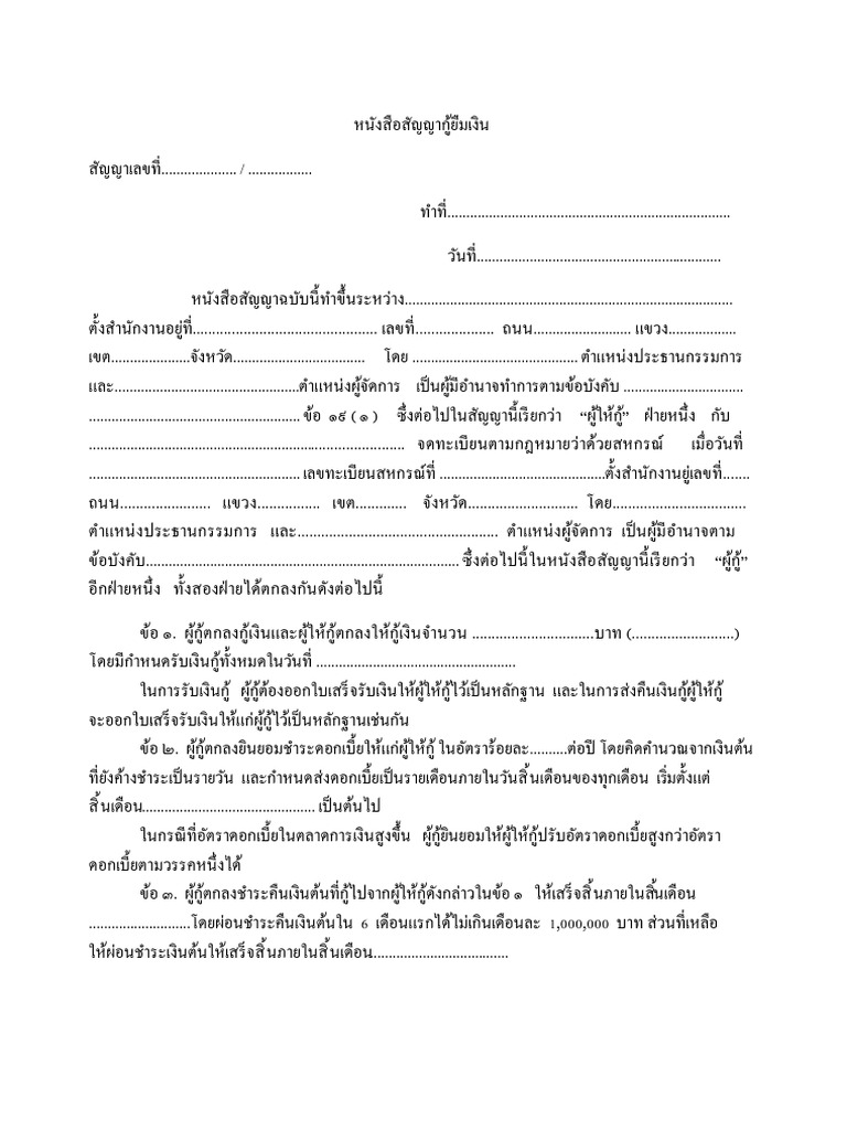 ข้อ ๑. ผูก้ ตู้ กลงกูเ้ งินและผูใ้ ห้กตู้ กลงให้กเู้ งินจํานวน ...............................บาท (..........................)