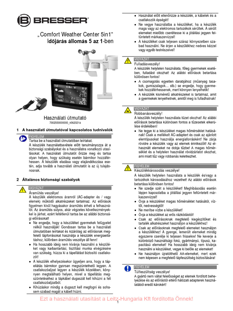 Időjárás állomás 5 az 1-ben • A készüléket csak teljesen száraz környezetben sza-