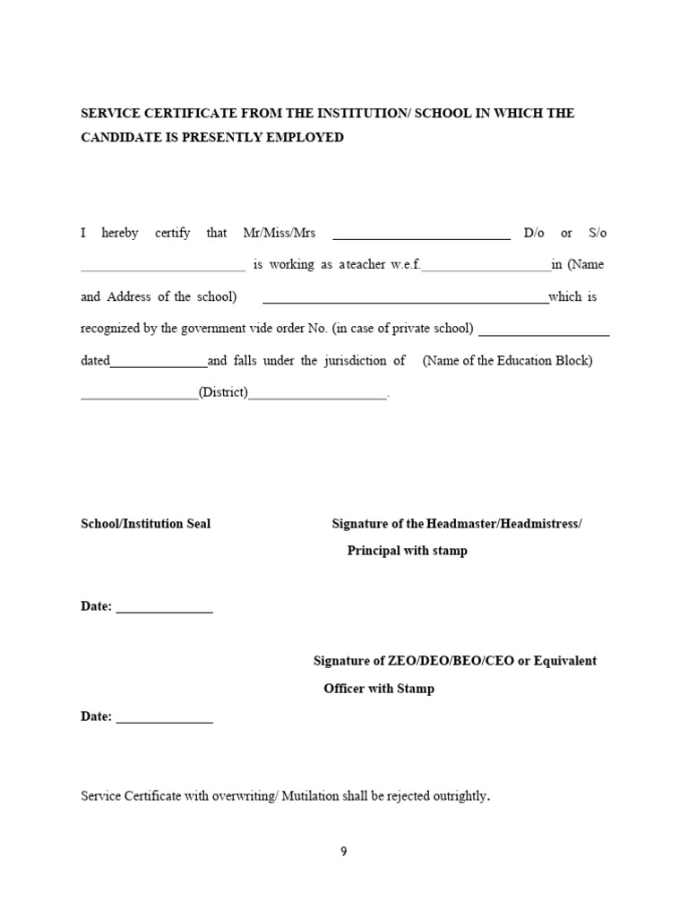 SERVICE CERTIFICATE FROM THE INSTITUTION/ SCHOOL IN WHICH THE
