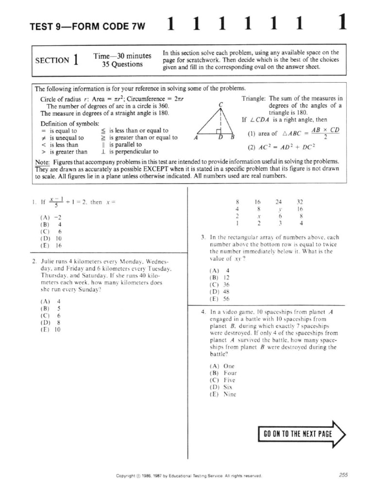 Note: Figures that accompany problems in this test are intended to provide information useful in solving the problems.