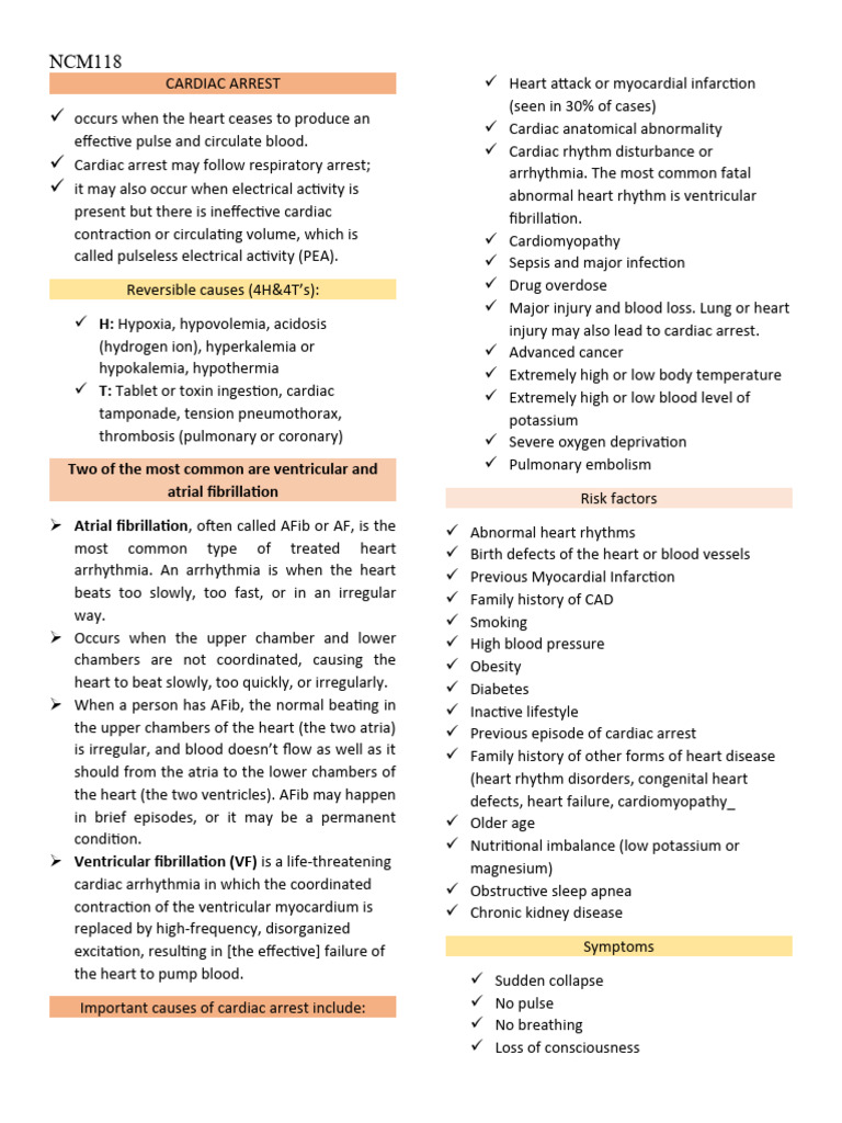 called pulseless electrical activity (PEA). Sepsis and major infection