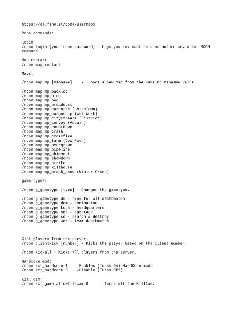 /rcon map mp_[mapname] - Loads a new map from the name mp_mapname value