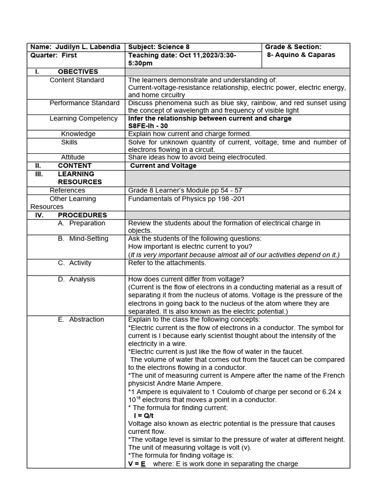 Learning Competency Infer the relationship between current and charge