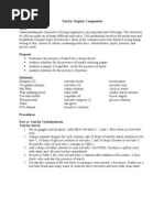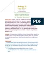 carbohydrates, lipids, and protein by using benedict, biuret, iodine’s solution, ethanol, and water,