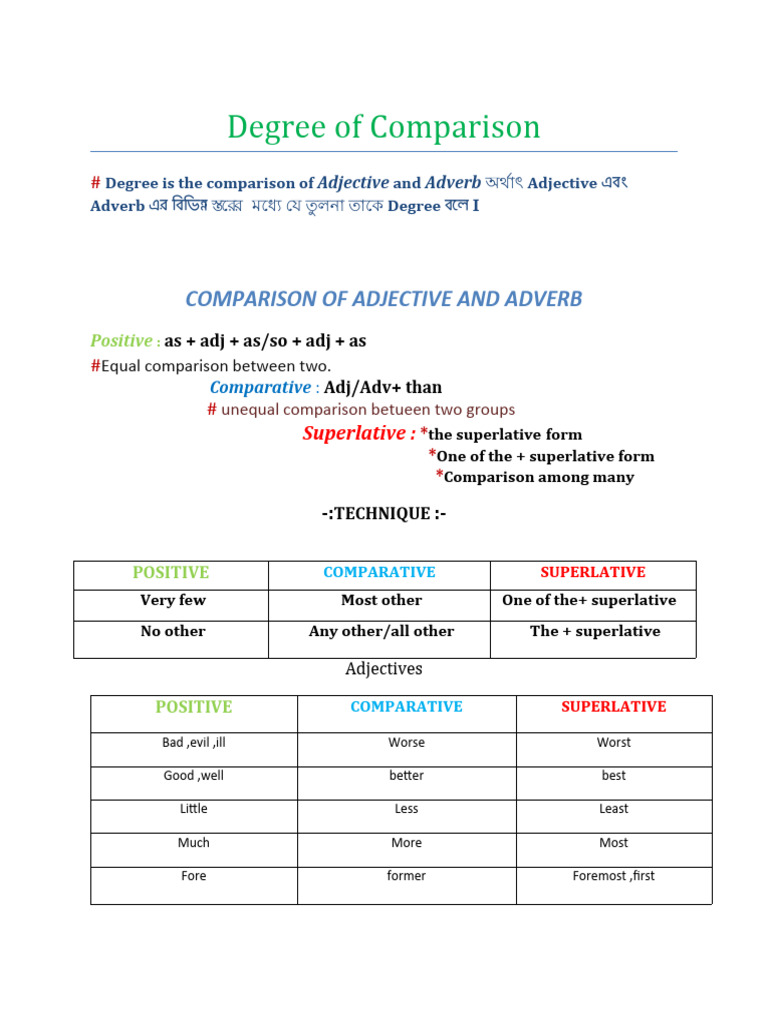 # Degree is the comparison of Adjective and Adverb অর্থাৎ Adjective এবং