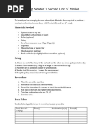 This laboratory experiment involves testing the relationship between force, mass, and acceleration by