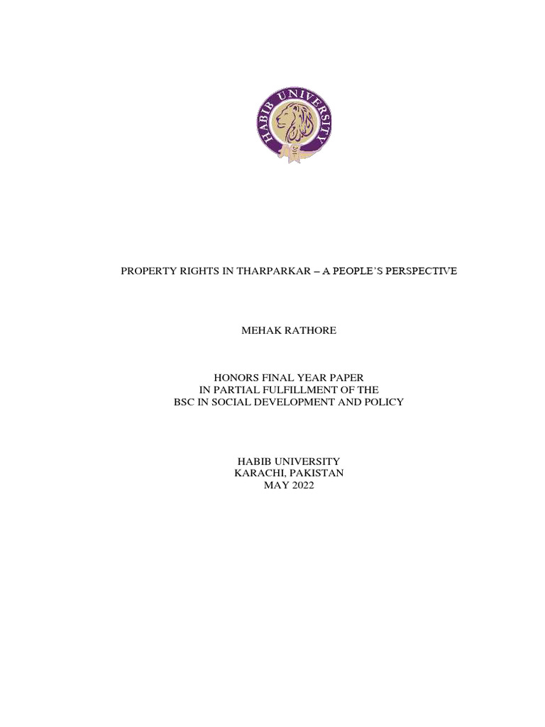 region of Tharparkar. This research confirms that property rights are indeed very