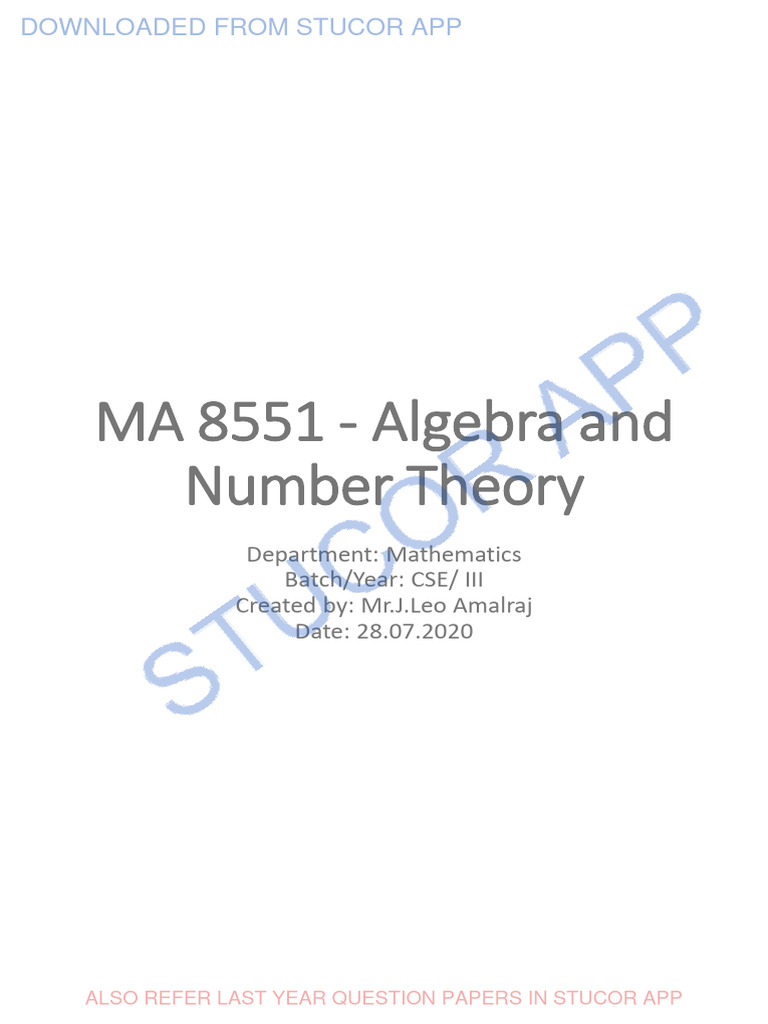 MA 8551 Algebra and Number Theory Syllabus