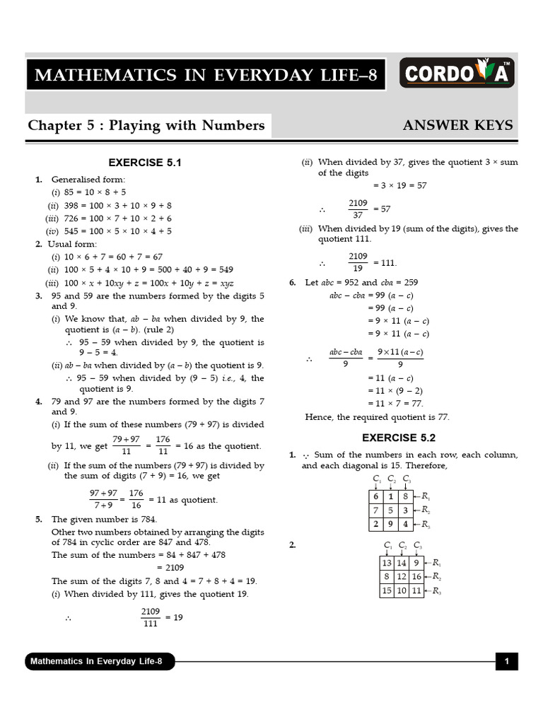 Chapter 5 : Playing with Numbers ANSWER KEYS