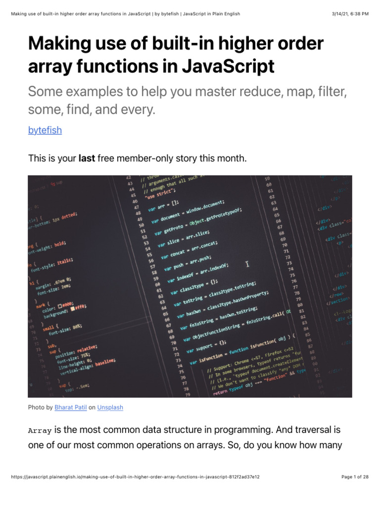 https://javascript.plainenglish.io/making-use-of-built-in-higher-order-array-functions-in-javascript-812f2ad37e12 Page 28 of 28