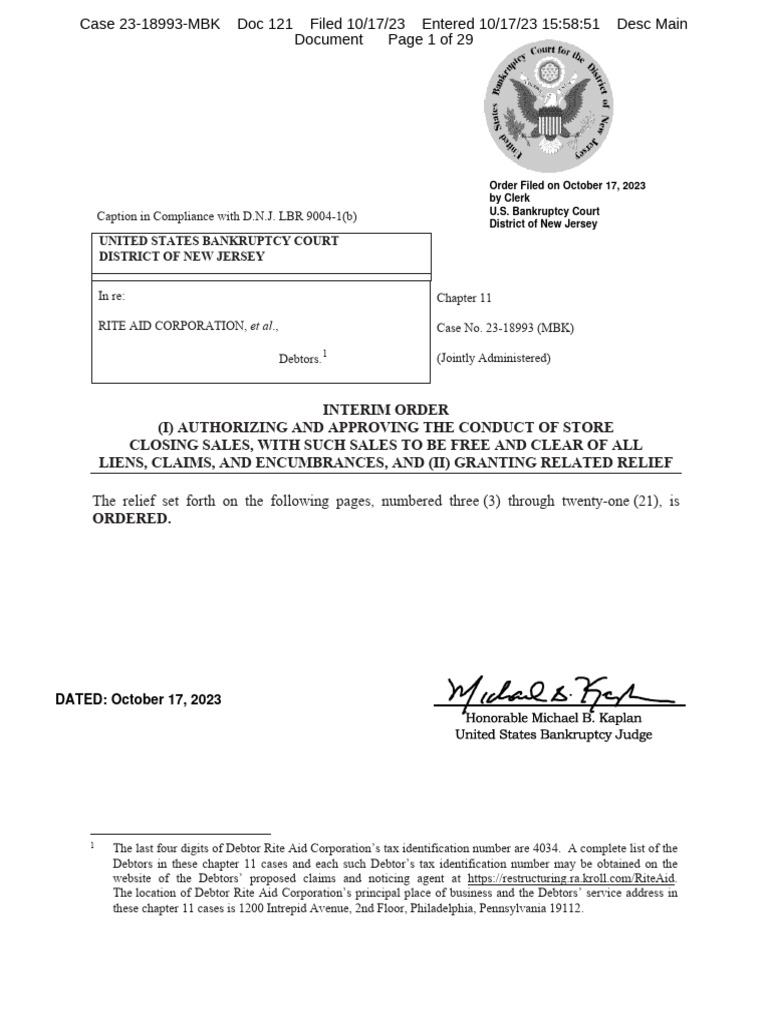 Caption of Order: Interim Order (I) Authorizing and Approving the Conduct of Store Closing