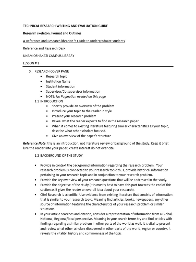 TECHNICAL RESEARCH WRITING AND EVALUATION GUIDE