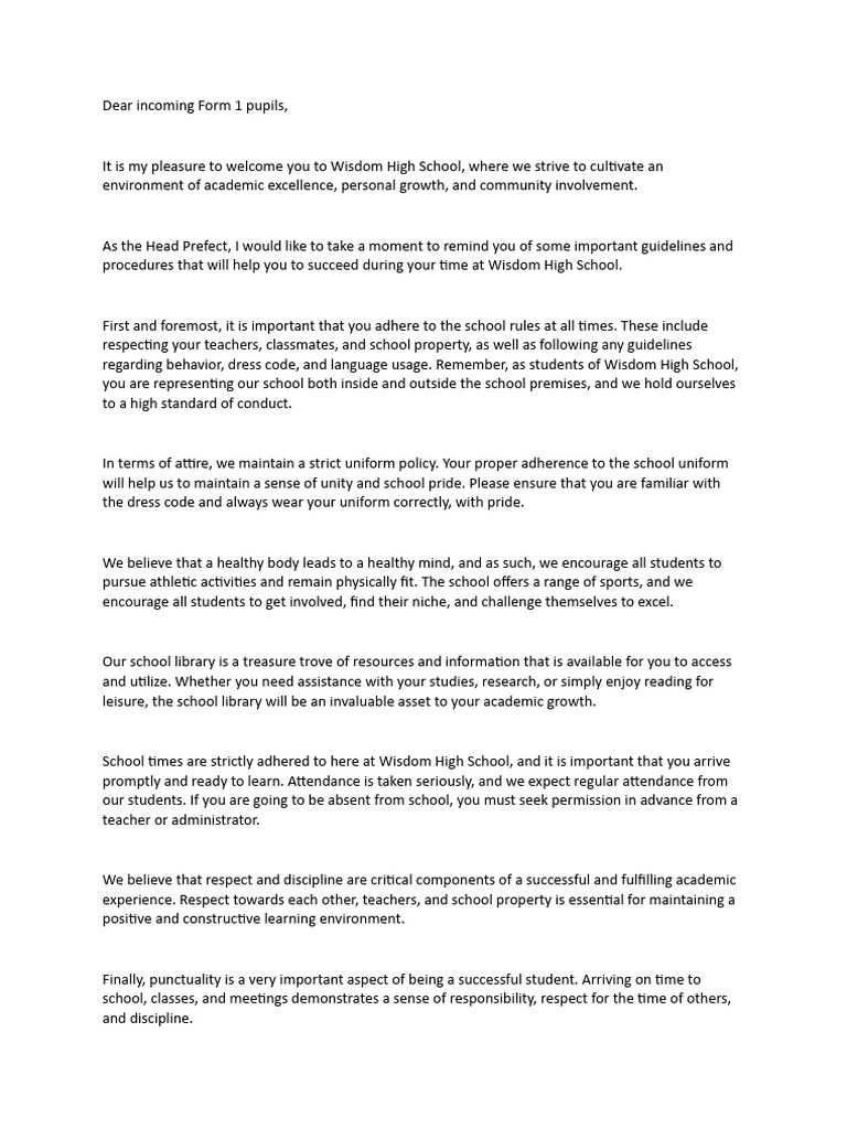 In conclusion, I encourage all incoming Form 1 pupils to embrace the values, guidelines, and policies