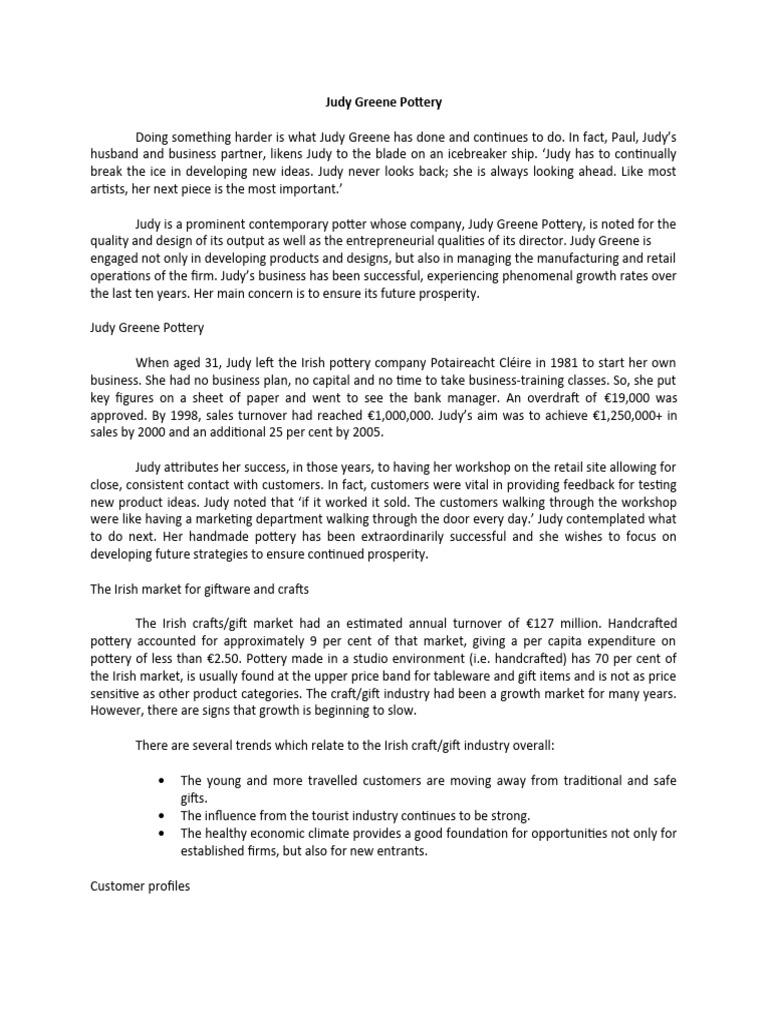 to do next. Her handmade pottery has been extraordinarily successful and she wishes to focus on