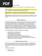 using their mobile phone. The money is sent, received and stored using a ‘mobile