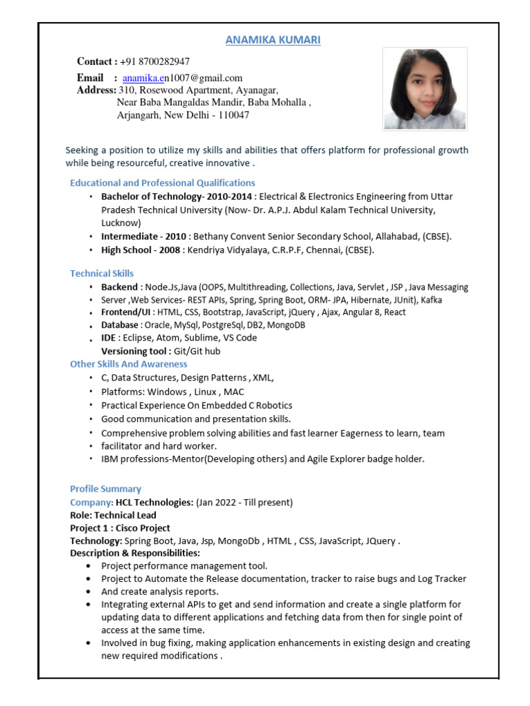 Company : IBM India Pvt. Ltd: 4yrs (2014-2019)
