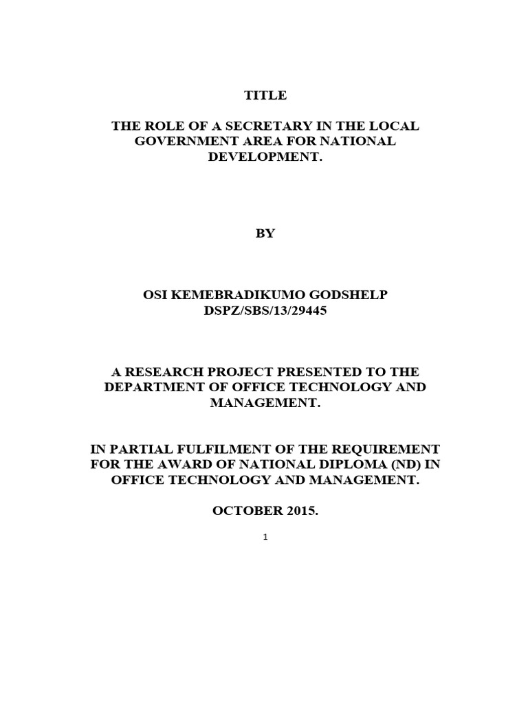 THE ROLE OF A SECRETARY IN THE LOCAL