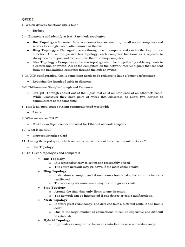 1. Which devices functions like a hub?