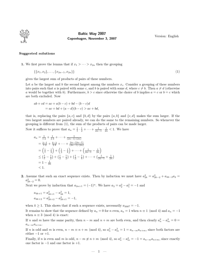 1. We first prove the lemma that if x1 > · · · > x2n then the grouping