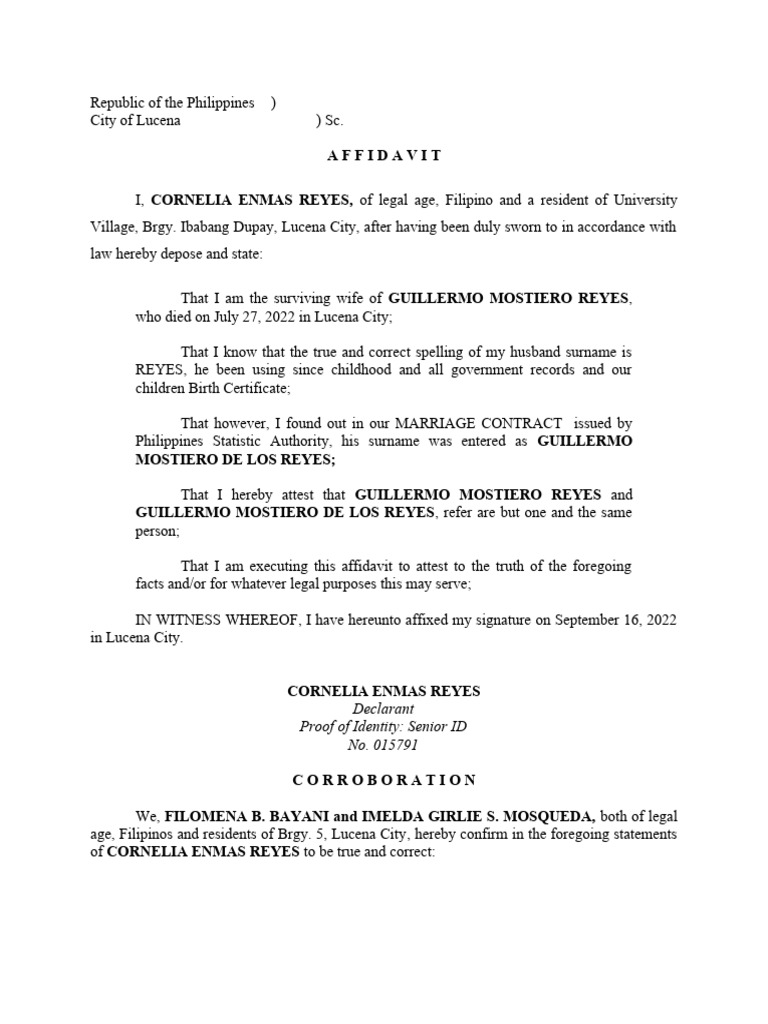 age, Filipinos and residents of Brgy. 5, Lucena City, hereby confirm in the foregoing statements