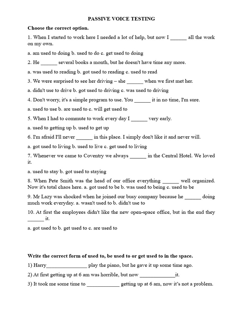 a. am used to doing b. used to do c. get used to doing