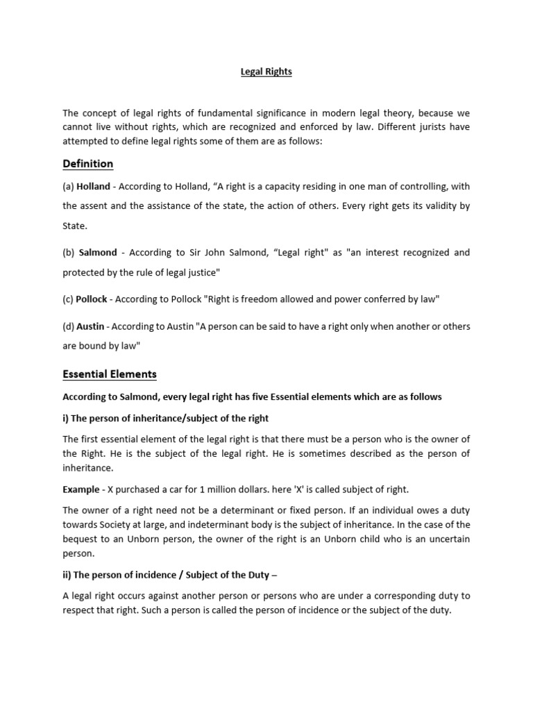 cannot live without rights, which are recognized and enforced by law. Different jurists have