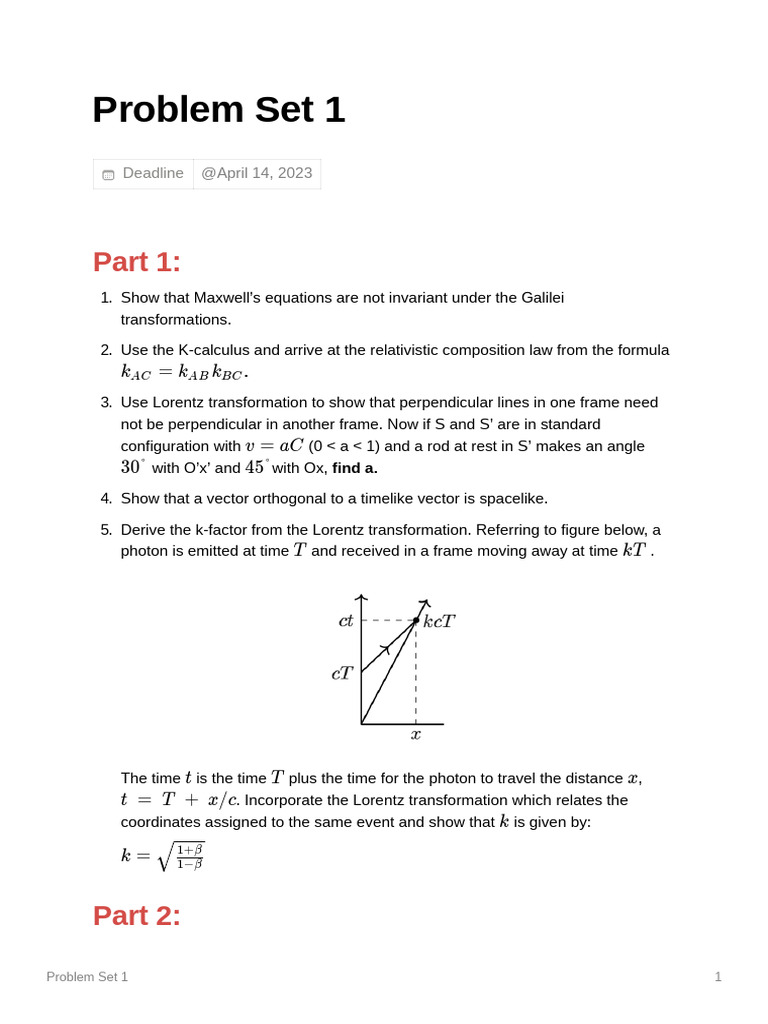 5. Derive the k-factor from the Lorentz transformation. Referring to figure below, a
