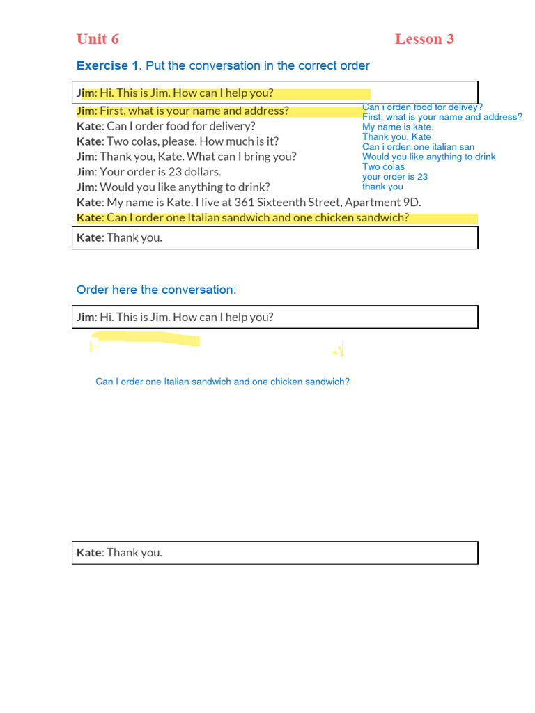 Exercise 1. Put the conversation in the correct order