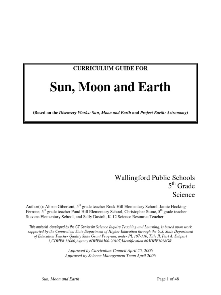 5th Grade Sun, Moon, and Earth Guide