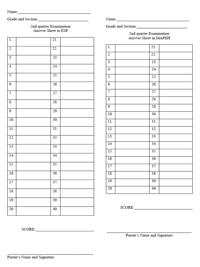Answer Sheet in ESP