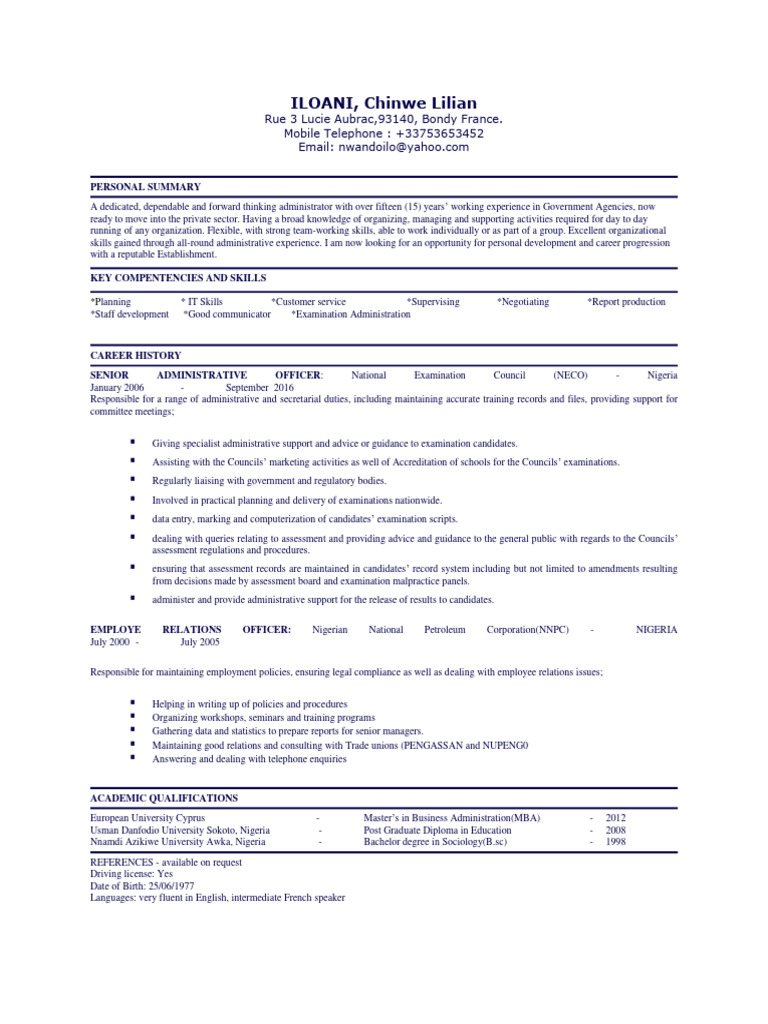 skills gained through all-round administrative experience. I am now looking for an opportunity for personal development and career progression