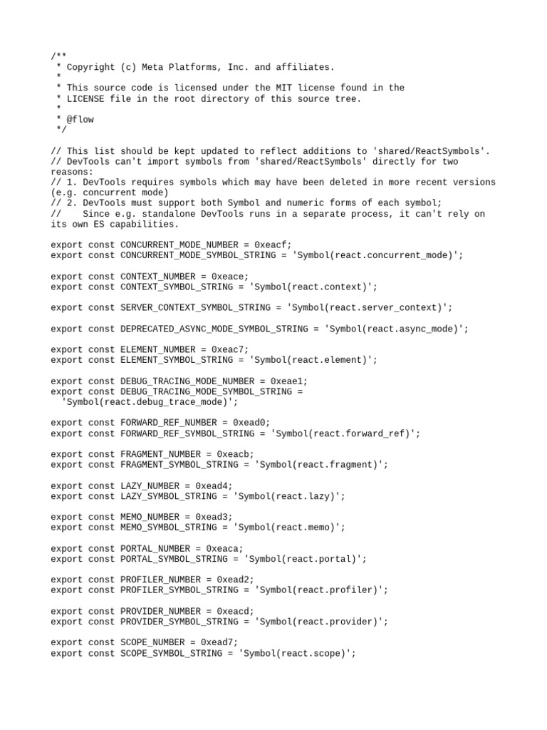 // This list should be kept updated to reflect additions to 'shared/ReactSymbols'.