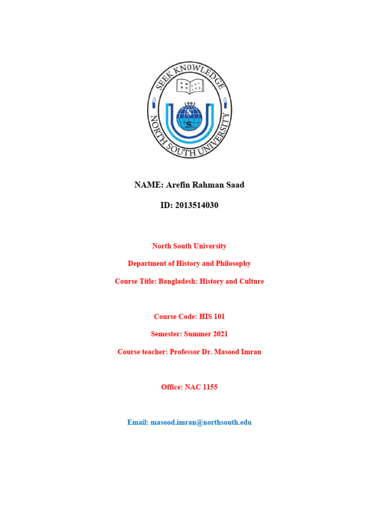 Course Title: Bangladesh: History and Culture