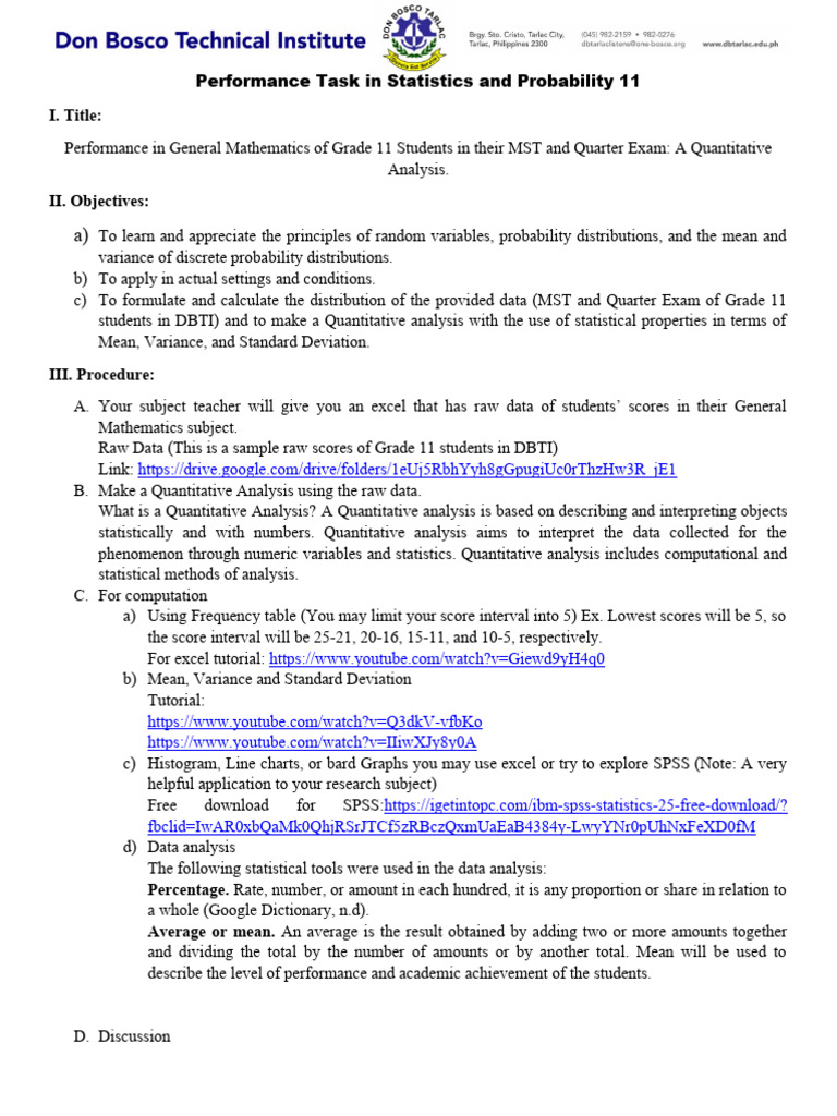 Performance Task in Statistics and Probability 11