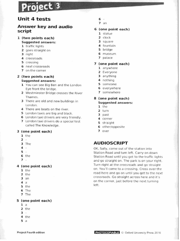 Answer key and audio