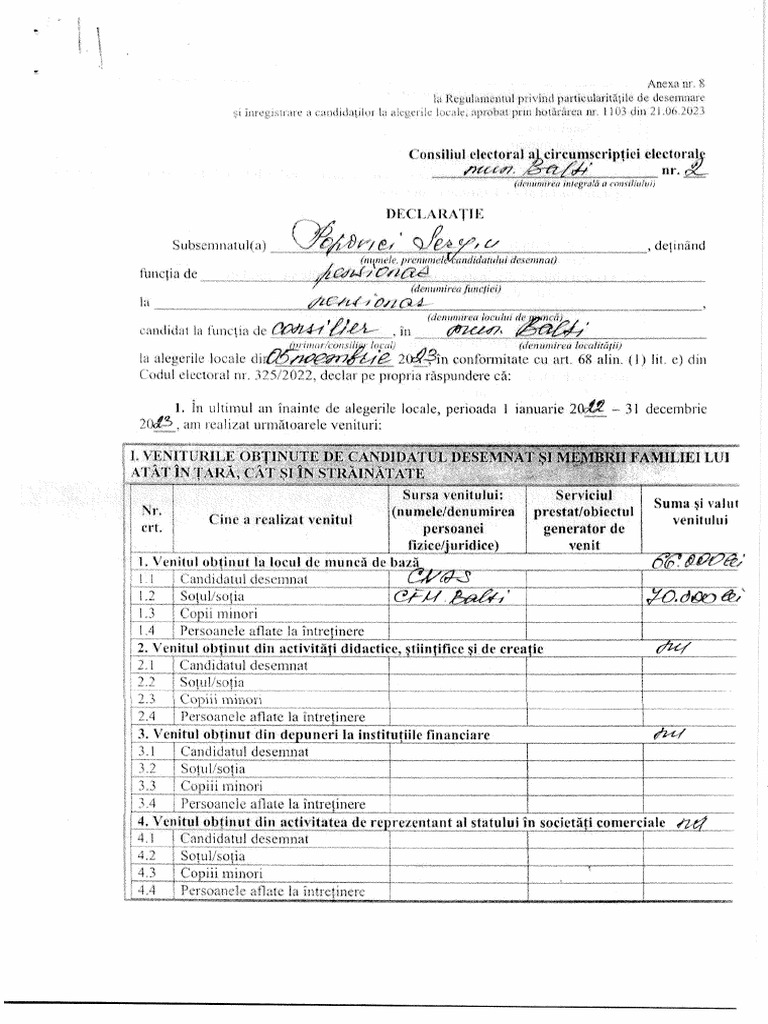 Se indica, inclusiv, veninwile objinute de membrit familie’ candidan
