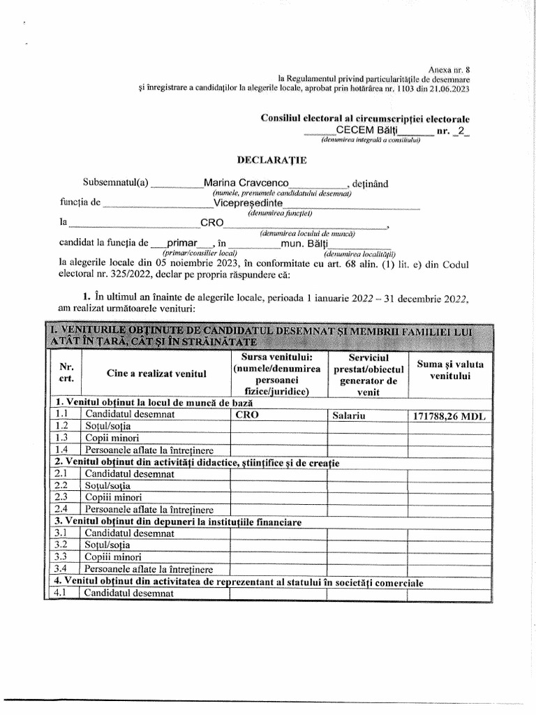 8.1 [ Candidatul desemnat Rude Evenimente de [ 148000 MDL