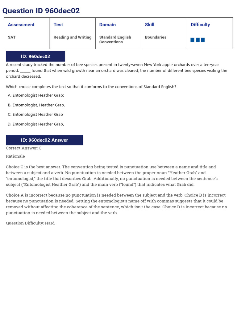 Choice B is incorrect. This doesn’t complete the text in a way that conforms to the conventions of Standard