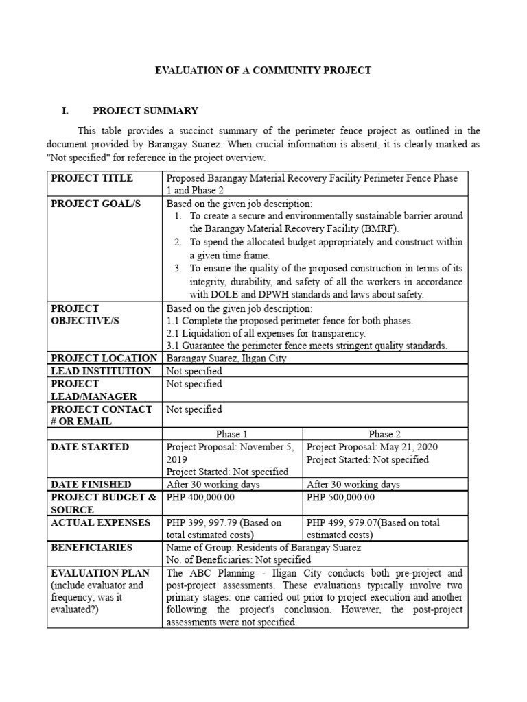 important to note that the post-evaluation report of the project is currently unavailable, this does not