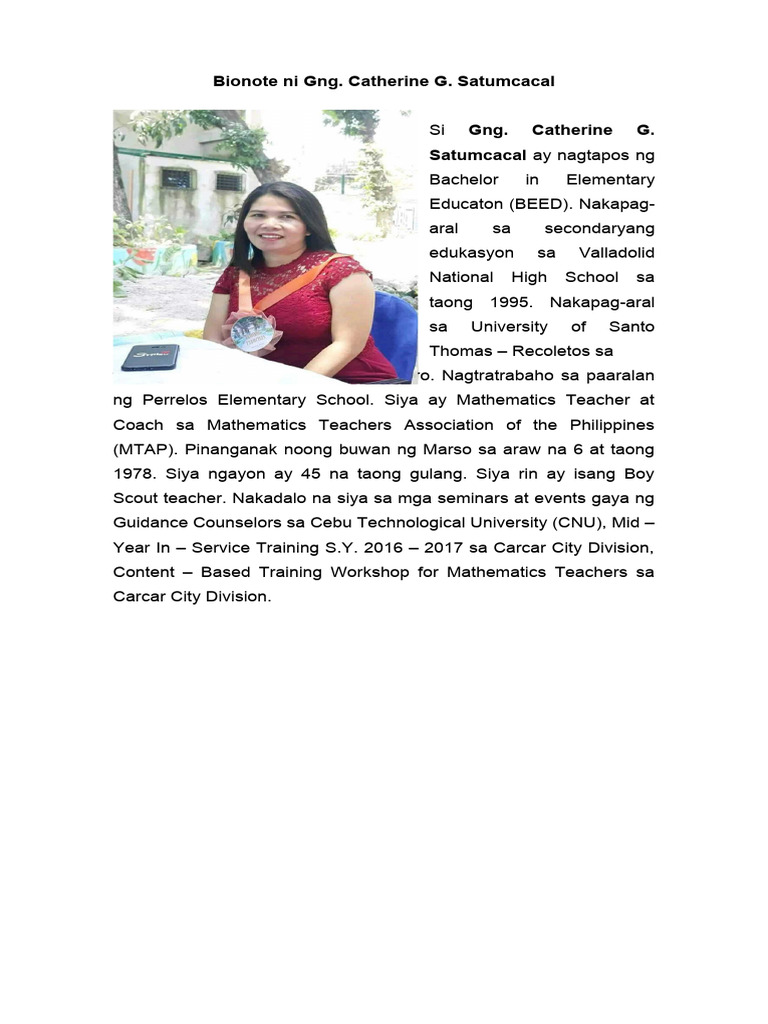 Bionote ni Gng. Catherine G.